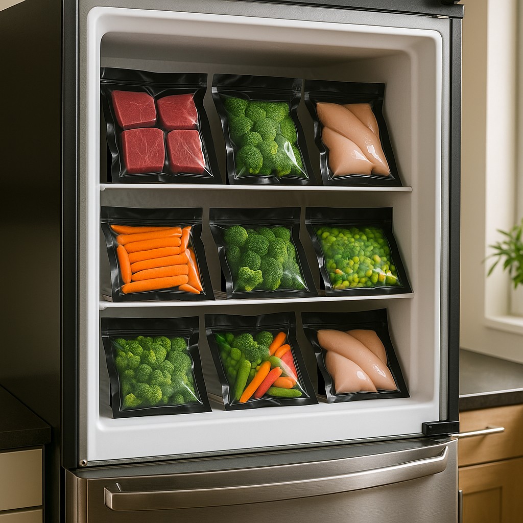 Com os rolos e sacos Black Diamante, você pode embalar carnes, temperos, pré-preparo de ceia, legumes picados e até sobremesas com antecedência, sem perder frescor.