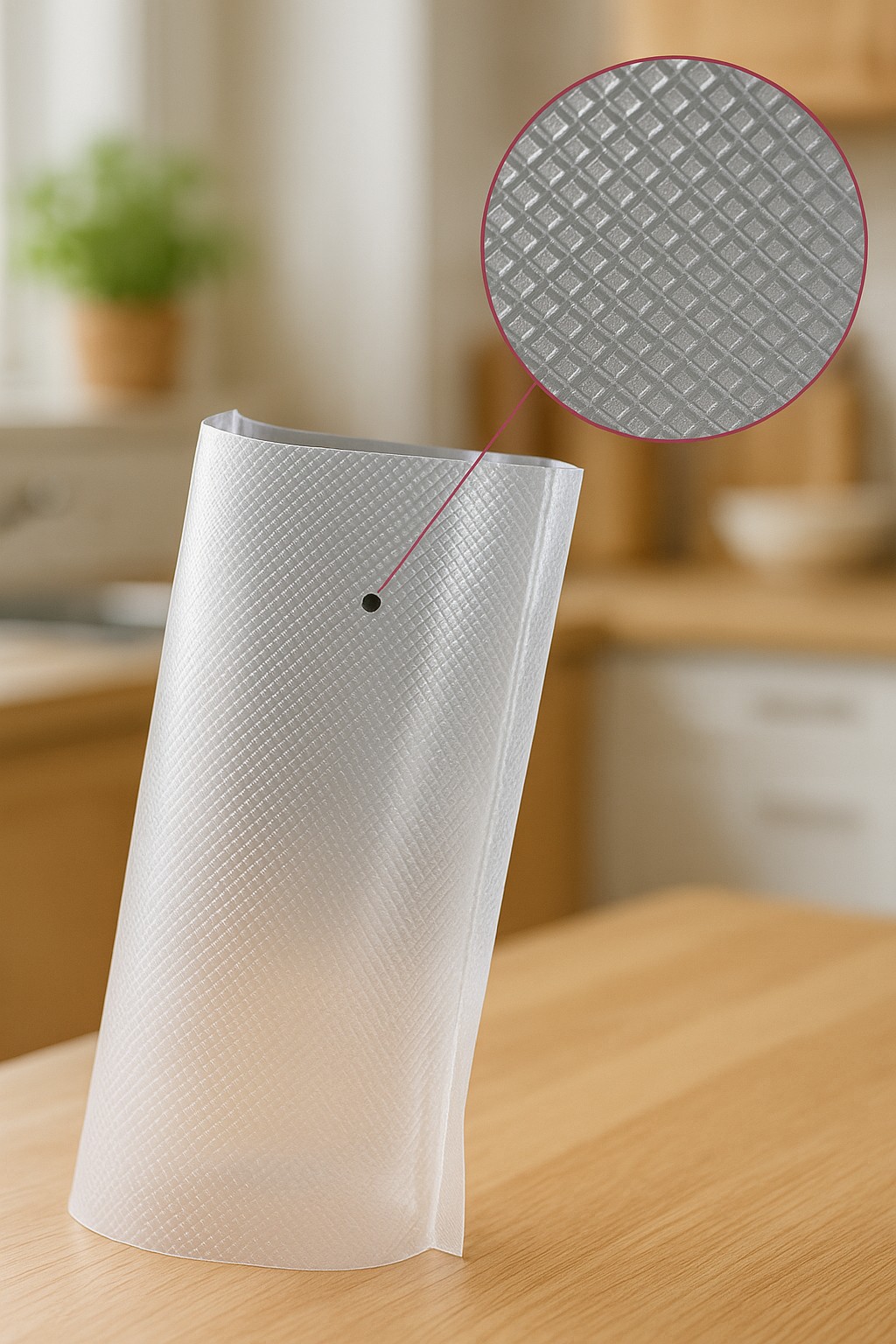 A embalagem lisa não funciona em seladoras domésticas porque esse tipo de máquina precisa de canais internos no material para que o ar consiga sair.