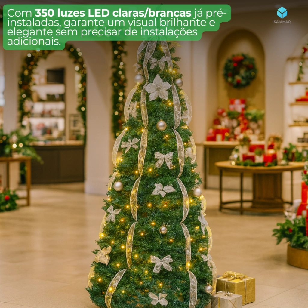 Praticidade total: já vem pronta e decorada, basta montar a estrutura e ligar as luzes.